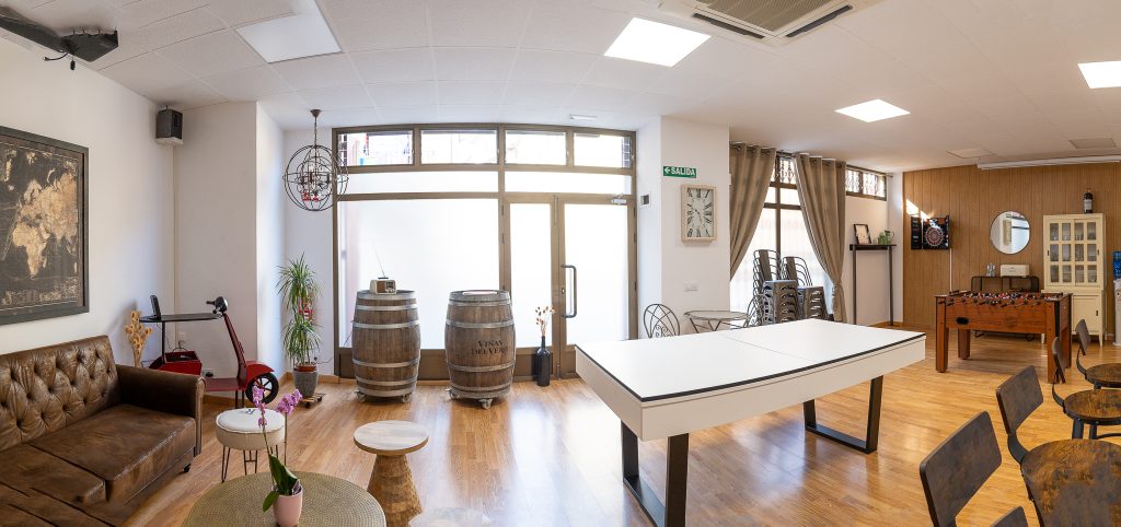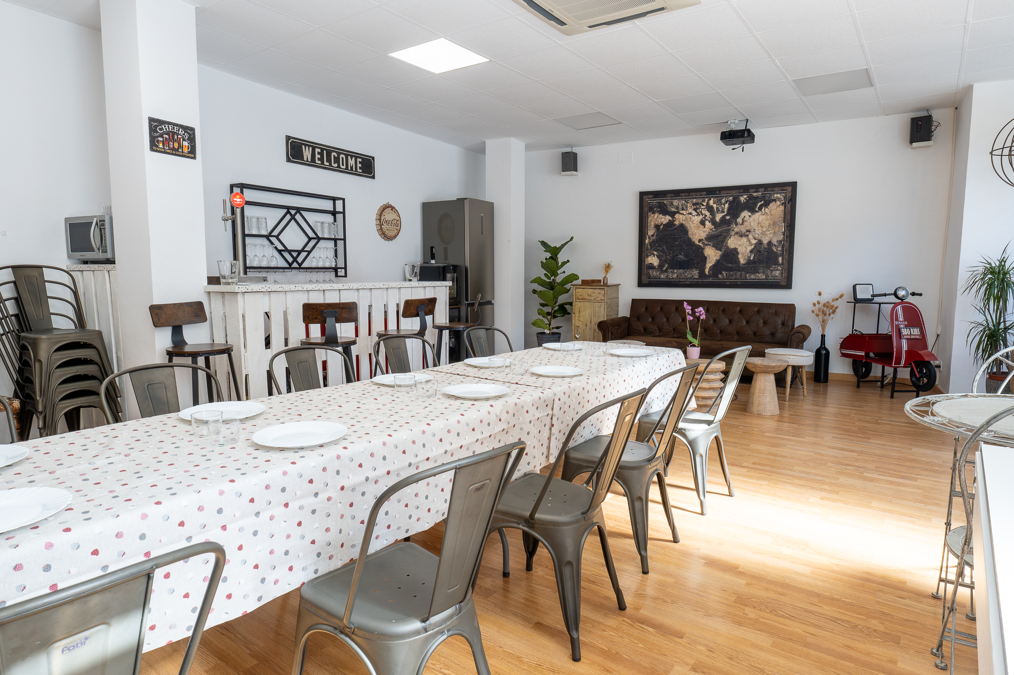 La sala cuenta con un amplio salón con zona chill out, área de comedor y diferentes espacios pensados para reuniones o celebraciones con un aforo máximo de 40 personas. Dispone además de barra de bar, equipamiento audiovisual y todas las comodidades necesarias para disfrutar del evento con total confort.